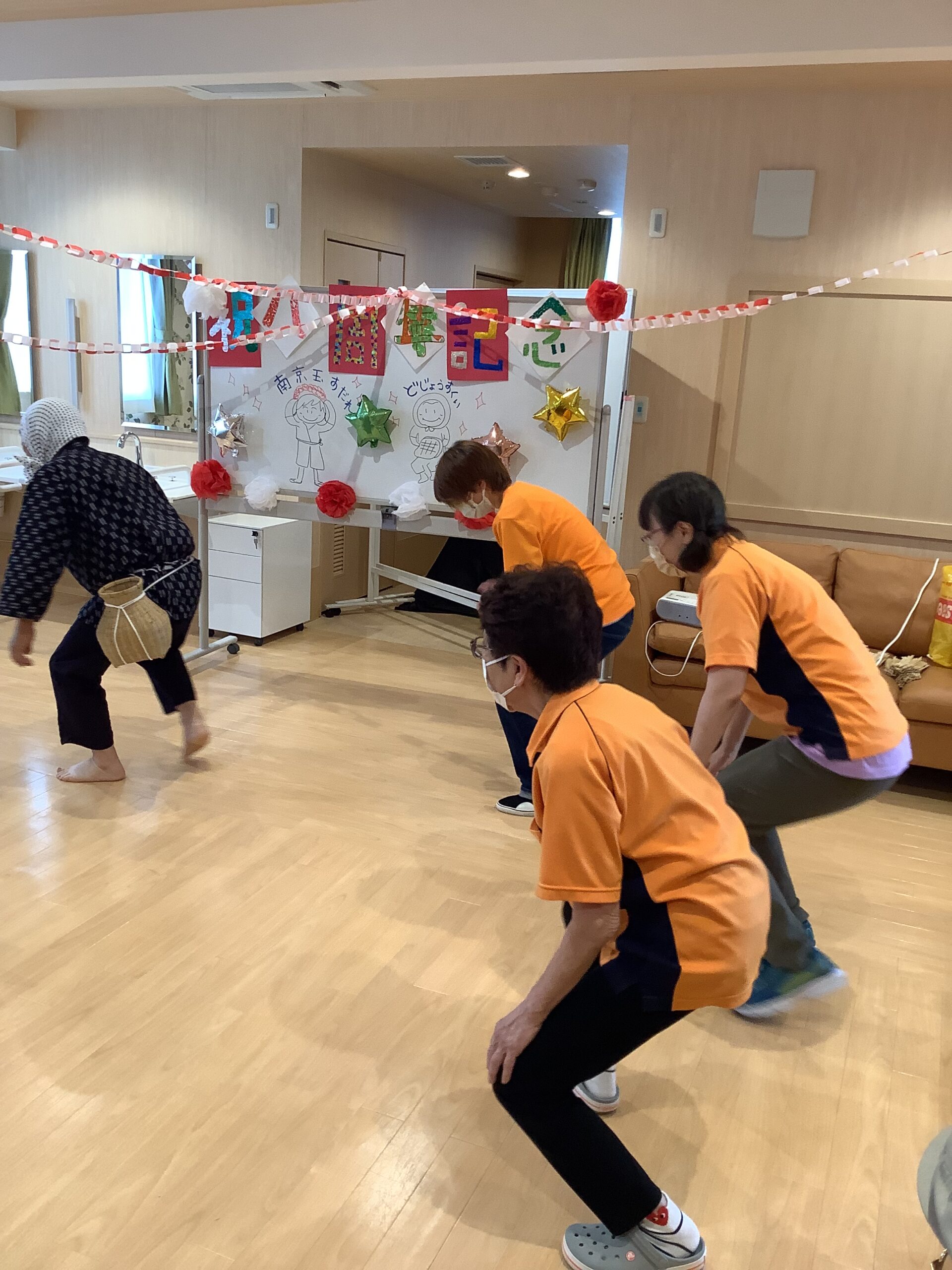 「どじょうすくい」は職員が体験しました。職員の動きに笑いがおこりました。