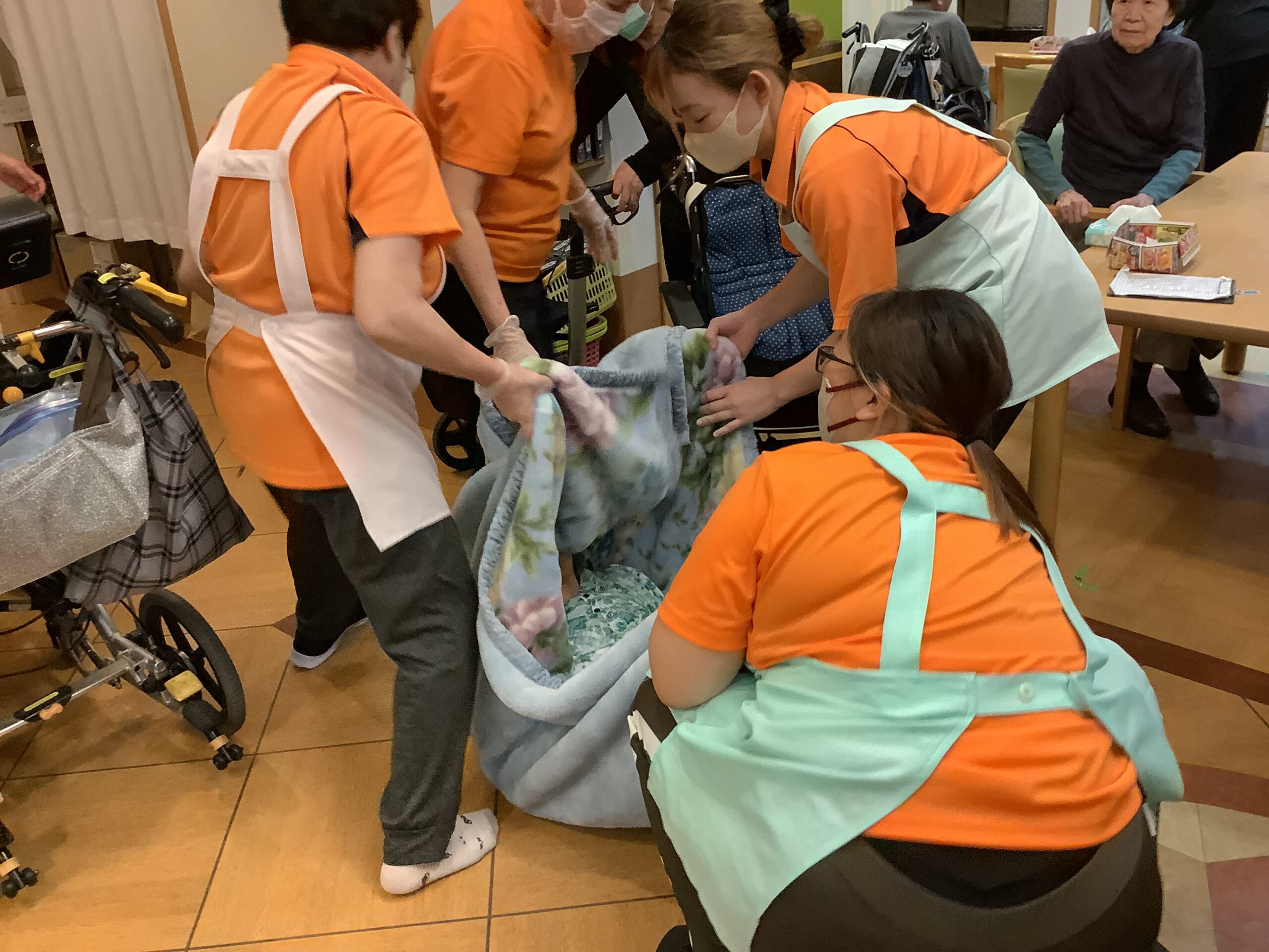 簡易トイレの使い方や簡易吸痰器の使い方確認も行い、実演での訓練ができて良かったです
