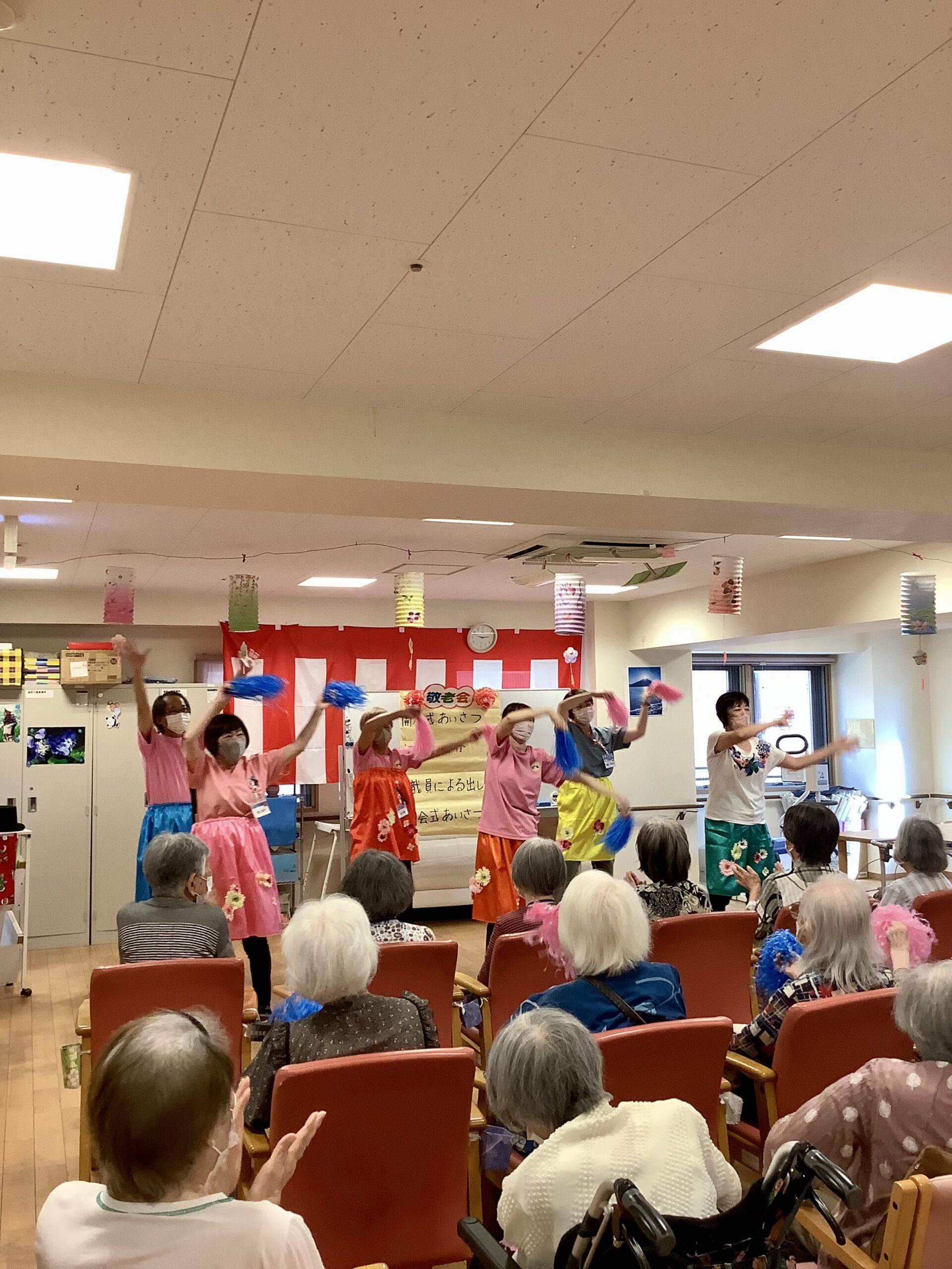 デイ管理者さんの南京玉すだれ、本格的なマジック、看護師さんとリハビリスタッフさんの息の合ったダンス、と本当に多彩で盛沢山でした。