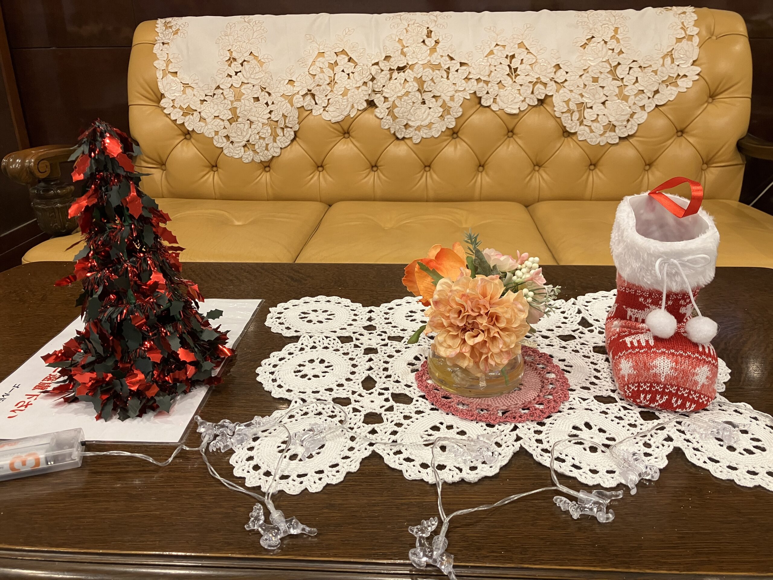 毎年夜勤スタッフさんが勤務の合間に少しづつ飾りつけしてくれていて、とても助かっています。