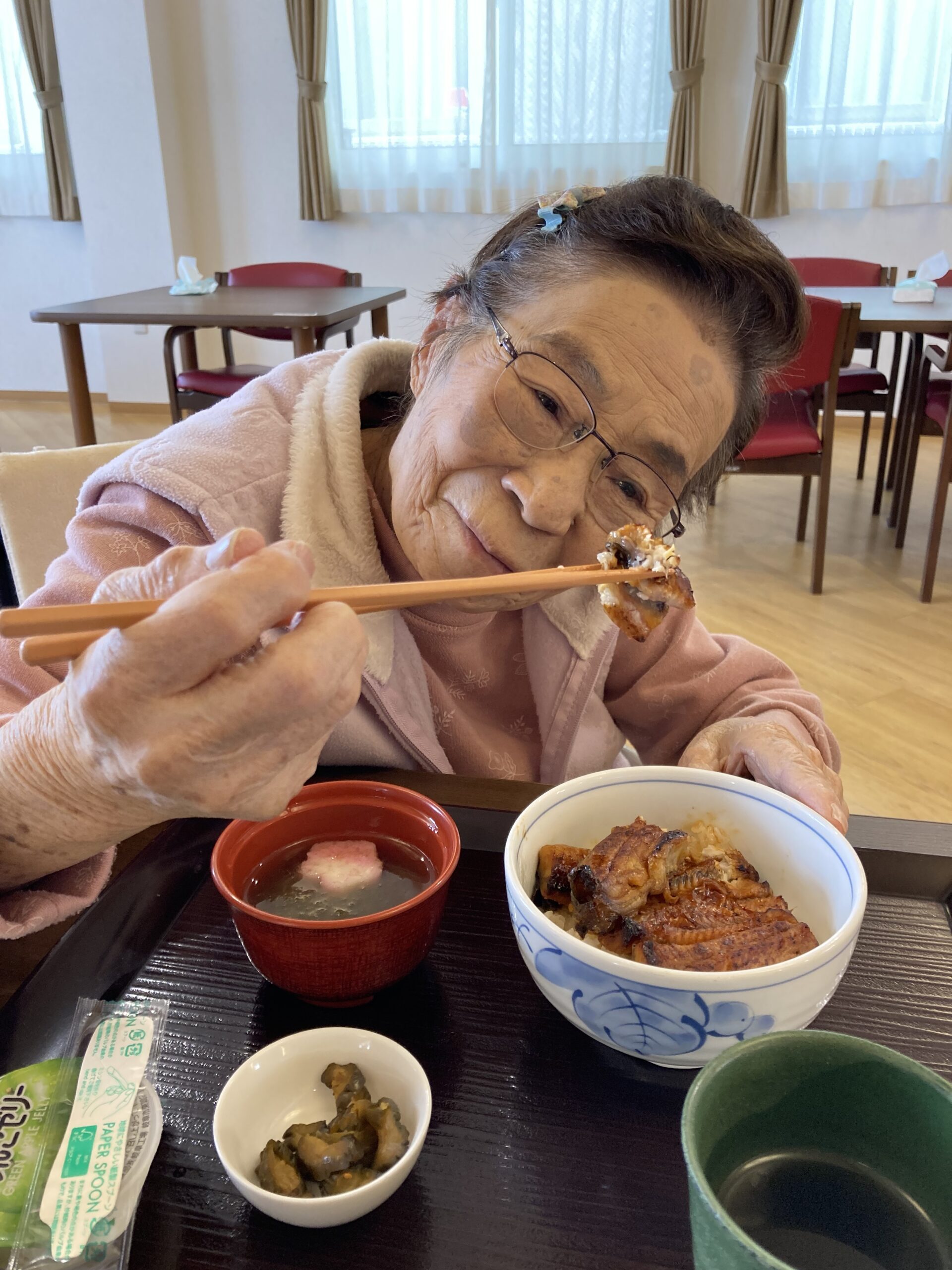 皆様より「うなぎが食べられて嬉しいです」「ペロッとたべちゃいました」など素敵な笑顔がたくさん見られました!