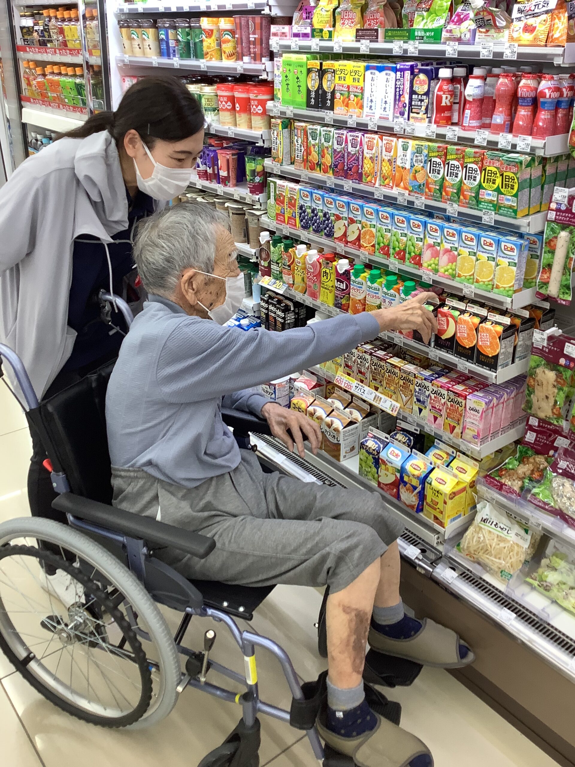 職員と入居者様は1対1で対応するので、この日はコンビニまで4往復し、いい運動の機会となりました!