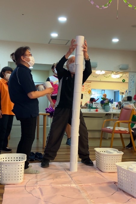 思いのほか高いところで止まってしまい ボールを受け取れない入居者様が続出。