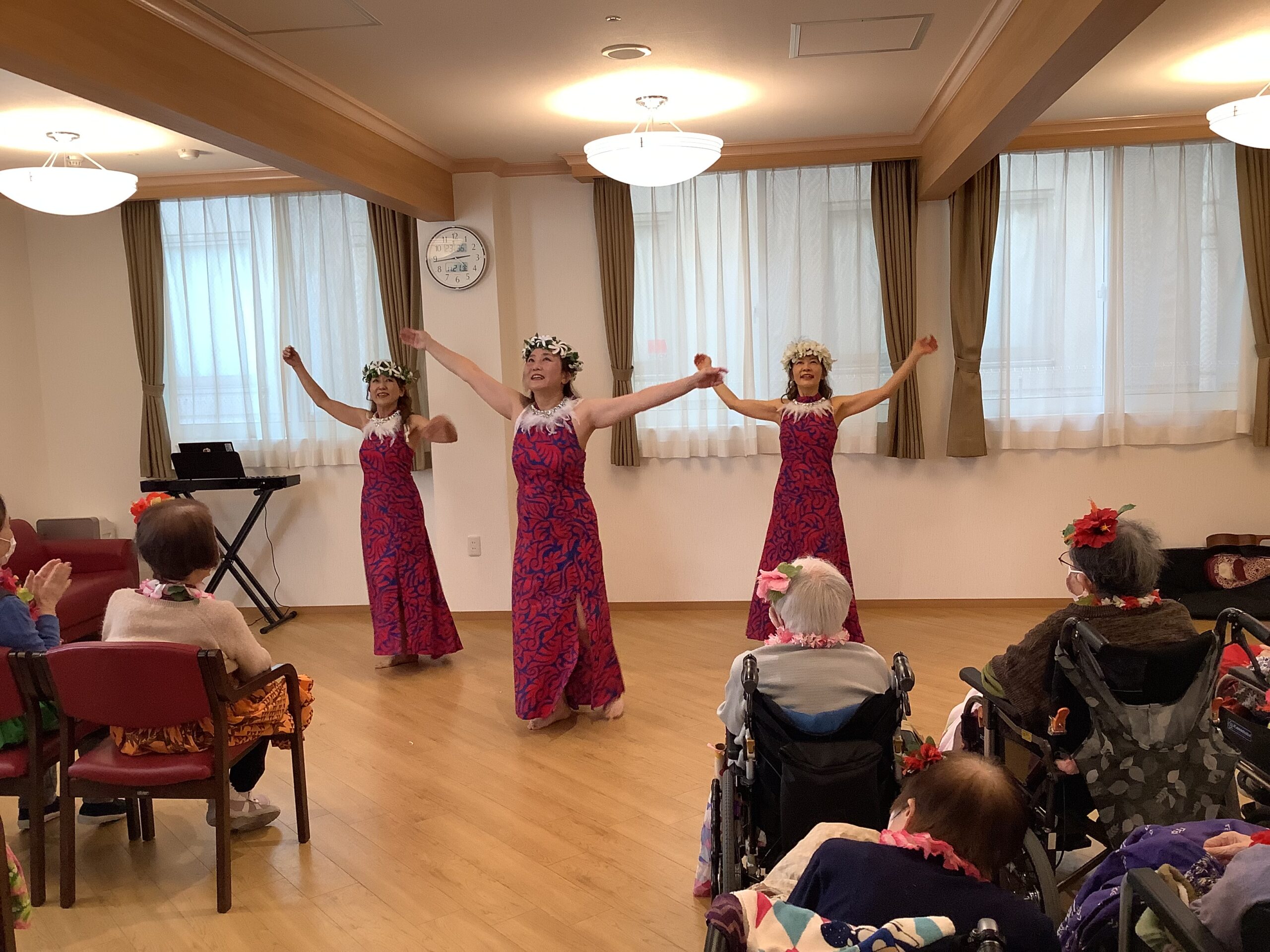 フラダンスのボランティアさんにお願いして、14名様に来て頂きました。
