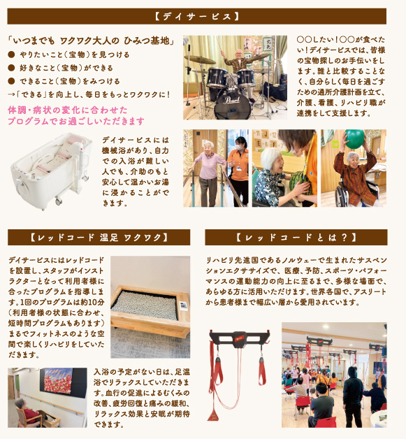 - 独自の訓練を取り入れた 「デイサービス(※)」を併設。