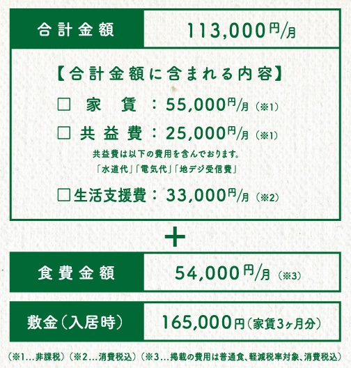 - 入居の際、 高額な一時金は不要です。