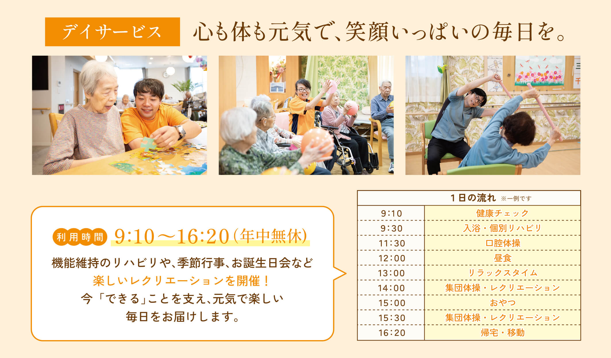 - デイサービス(※)を併設、安全に通えます。