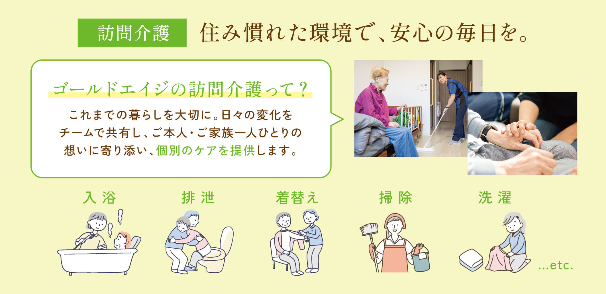- 訪問介護(※)を併設、個別のケアを提供します。