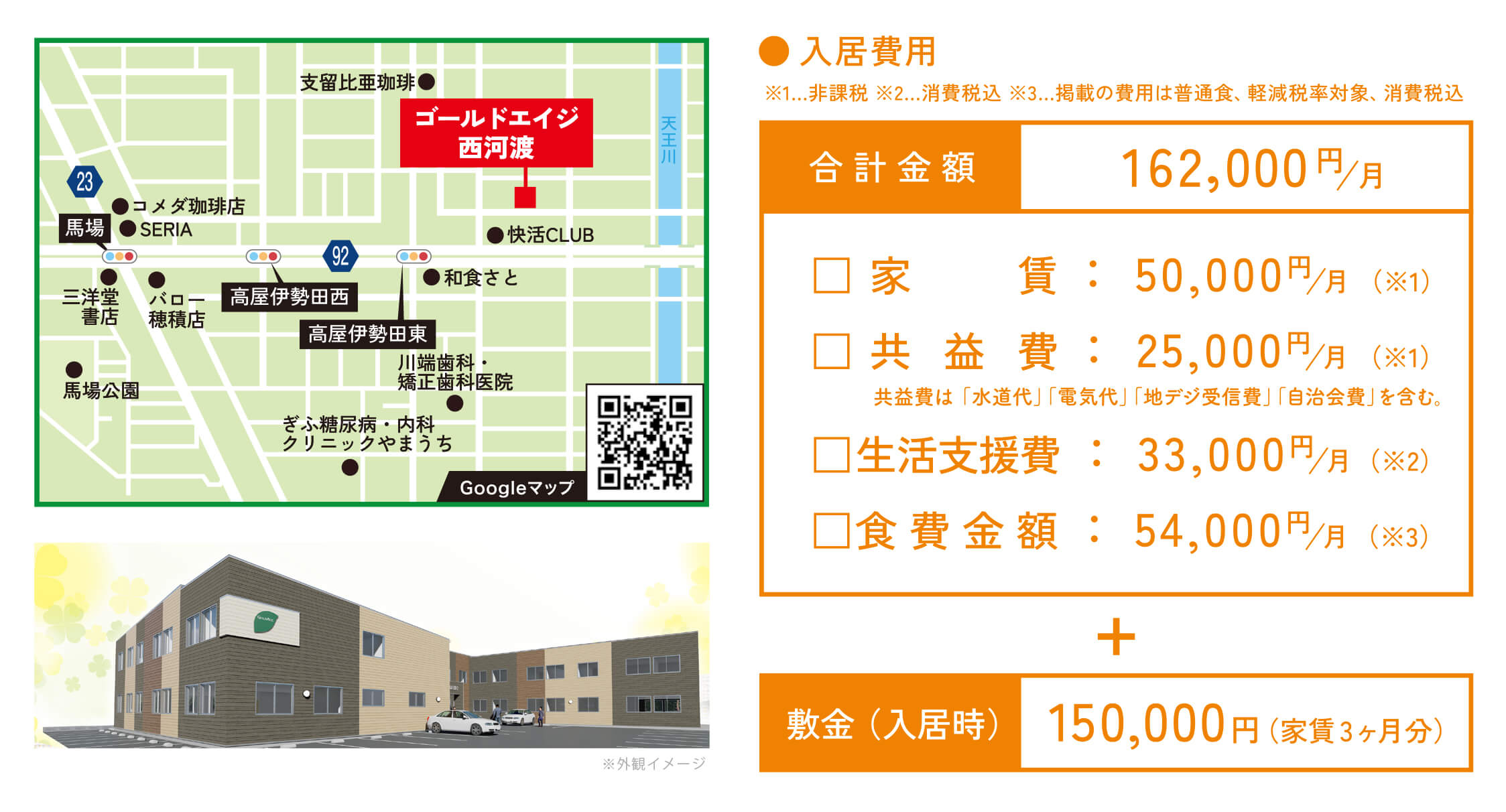 - 入居の際、高額な一時金は不要です。