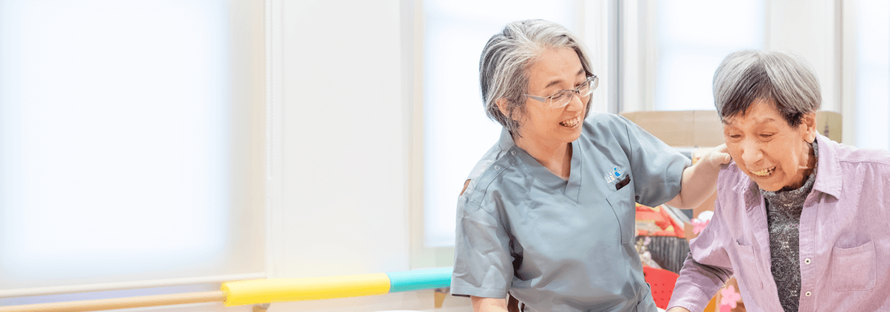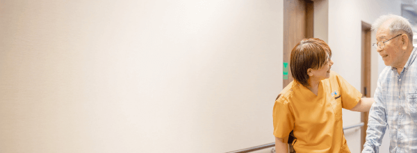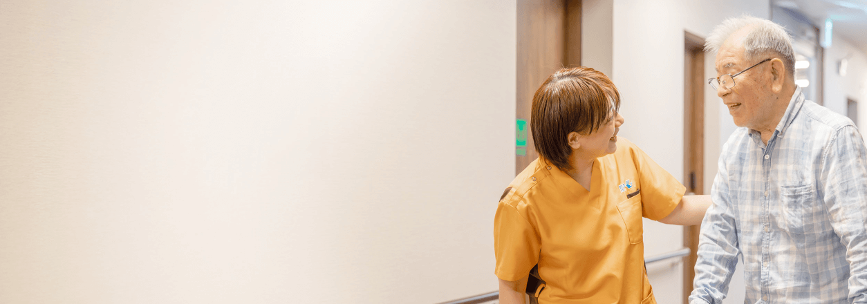顔なじみのスタッフが家族のように寄り添い、職種を越えて声をかけ合いながら気づきを共有。一人ひとりに寄り添うケアを行います。