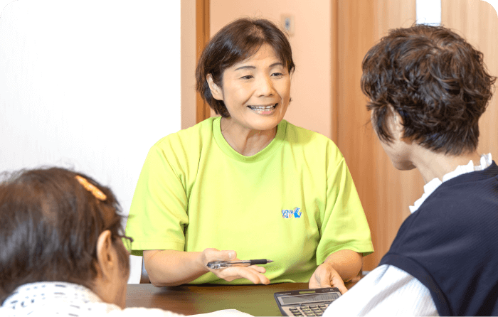 入居者さま一人ひとりの毎日を、スタッフ同士が声を掛け合い、情報を共有しながら見守っています。